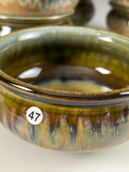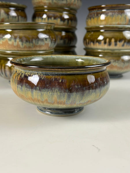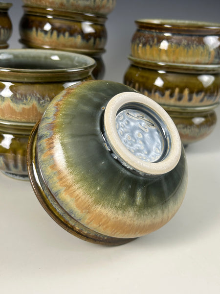 The glaze is a blue with tenmoku and rutile stain. It was fired to cone 10 in reduction.Measures approximately 3 inches tall by 4.75 inches wide. Microwavable, dishwasher and food safe.