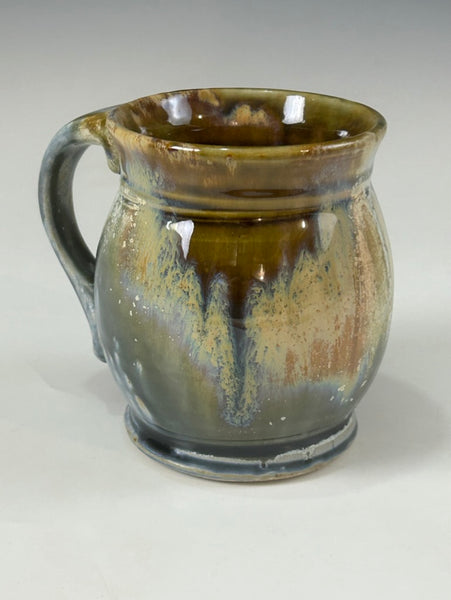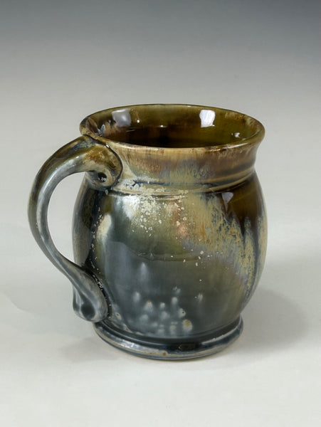 The glaze is a Blue with tenmoku and rutile stain. Mug was fired to cone 10 in reduction.