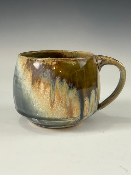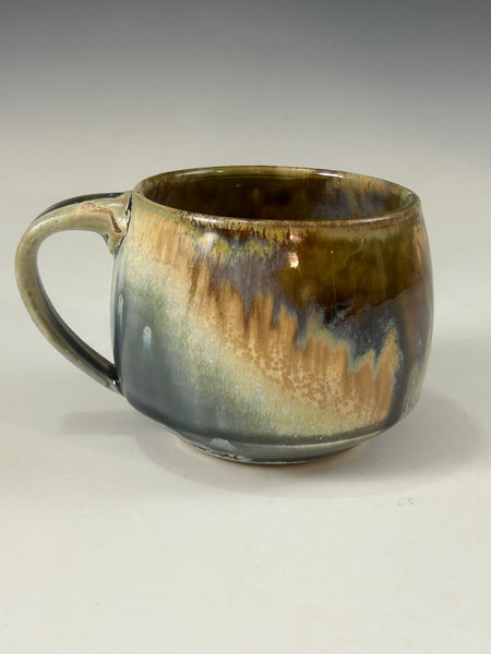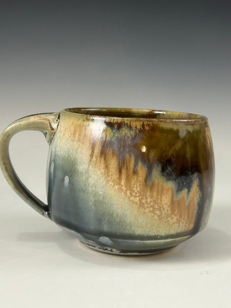 The glaze is a Blue with tenmoku and rutile stain. Mug was fired to cone 10 in reduction.