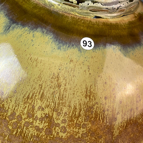This vase is fired to cone ten in reduction. It has as it's base, my blue ash glaze. It has an over spray of two different iron saturate glazes as well as a rutile stain.
