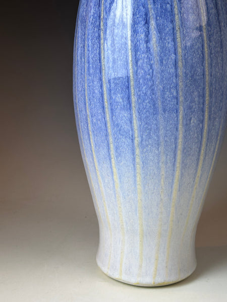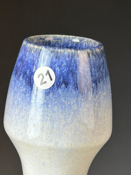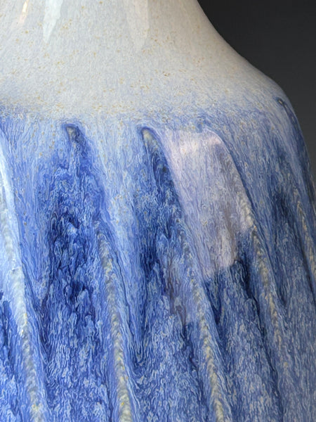 The glaze is my white liner with my Grandma's Blue glaze sprayed over it. It's a trash glaze and is made up of many glazes all poured together and can not be duplicated. My Grandma actually loaned me money to build my first gas kiln and kiln shed. She was very supportive of me. She loved blue. Even after macular degeneration when she could only make out shapes I would show her a pot and she would ask, and proclaim, "Is it blue, I love blue". I like calling it this cause it makes me think of her.