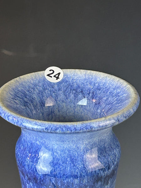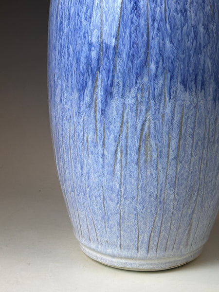 The glaze is my white liner with my Grandma's Blue glaze sprayed over it. It's a trash glaze and is made up of many glazes all poured together and can not be duplicated. My Grandma actually loaned me money to build my first gas kiln and kiln shed. She was very supportive of me. She loved blue. Even after macular degeneration when she could only make out shapes I would show her a pot and she would ask, and proclaim, "Is it blue, I love blue". I like calling it this cause it makes me think of her.