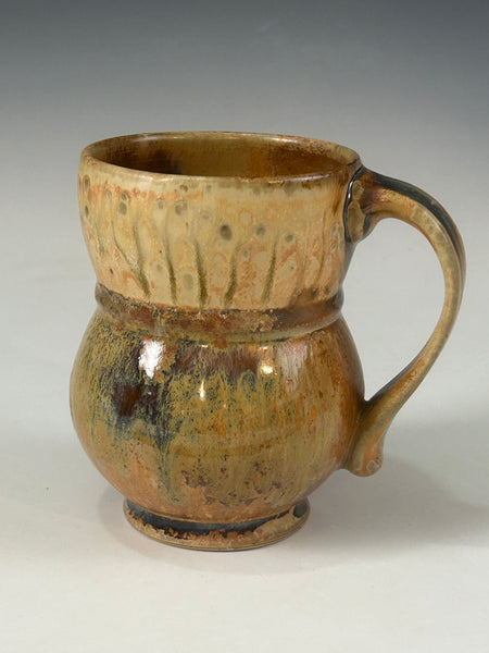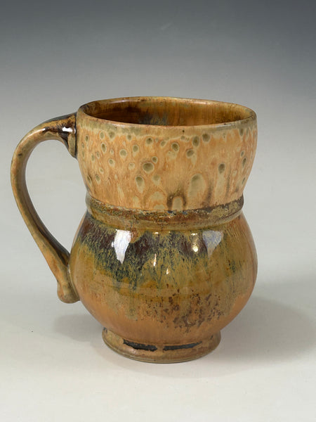 This mug is well balanced and the handle fits 2-3 fingersIt was fired to cone 10 in gas reductionMug measures approximately 5 h x 4.5 w x 4 dMicrowavable, dishwasher and food safe.