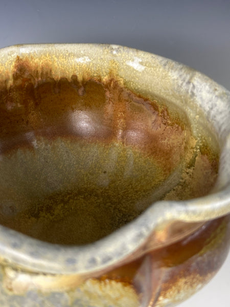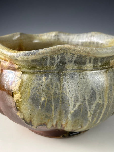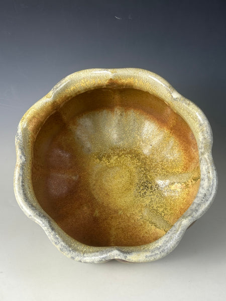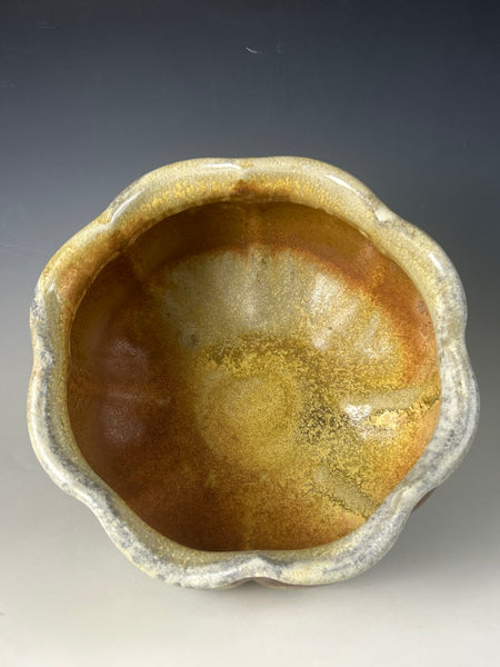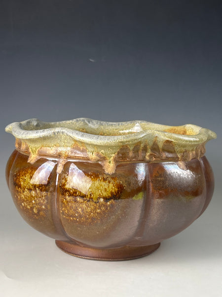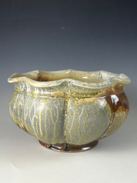This piece is made from a white stoneware and fired in Big Magic AnagamaBowl measures approximately 6.75 T x 11.5 W x 11.5 D***Food safe, microwave, and dishwasher safe.